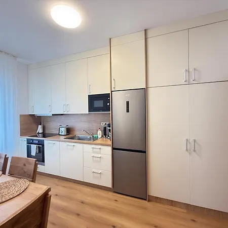 Un lavaplatos y un horno también están incluidos en una cocina. El Parkside Apartments Prague está muy cerca de la parada de autobuses Filmove ateliery Barrandov.